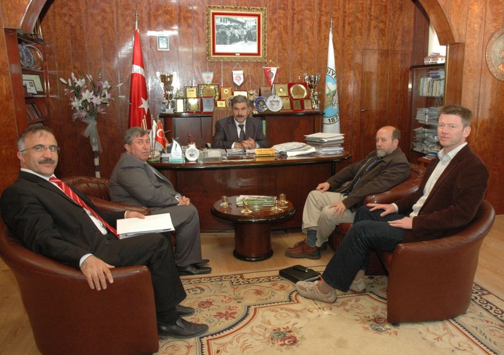 5 HAZİRAN DÜNYA ÇEVRE GÜNÜAtık Su Arıtma Tesisinin müşavirlik ihalesini alan DAHLEM Firması yetkililerinden ekip şefi Jhon Ford, Proses Mühendisi Thomas NEUGEBAUER, Saha Baş Mühendisi Arda VARIŞ Başkan Çiçek'i makamında ziyaret ettiler.
